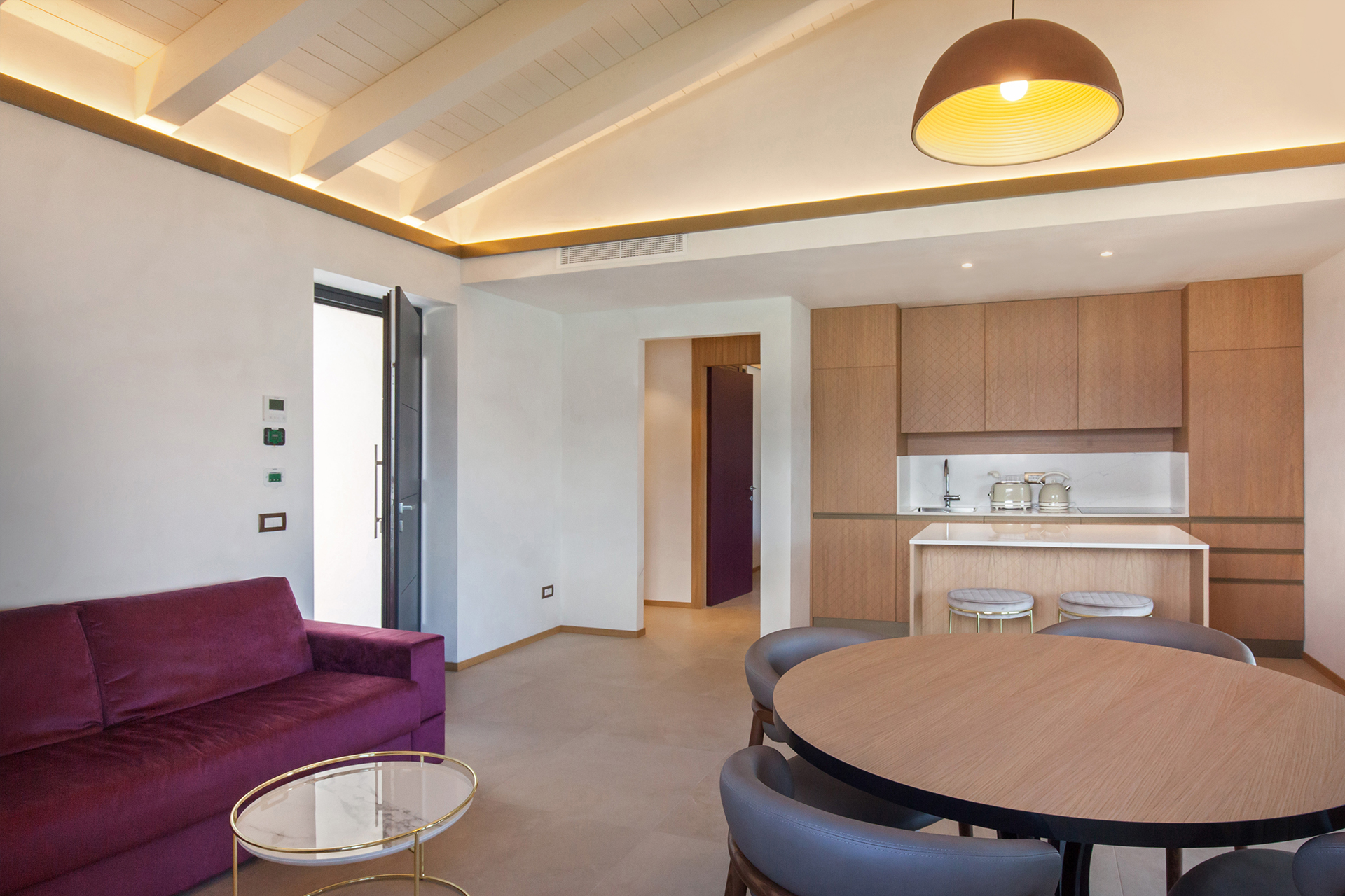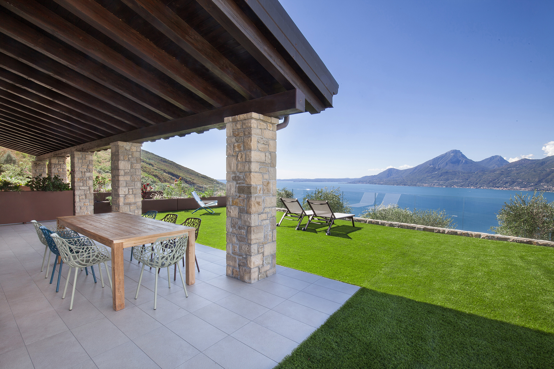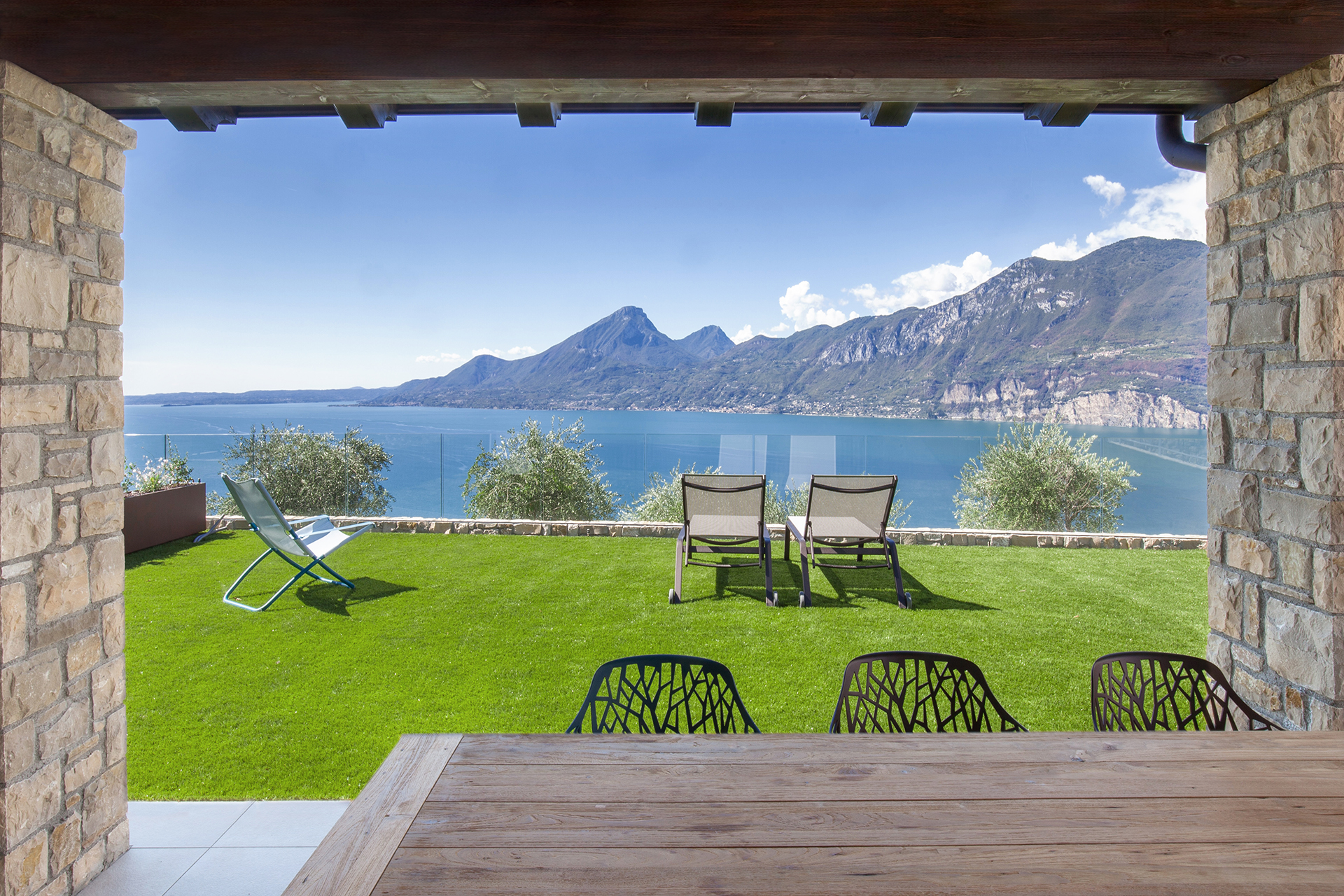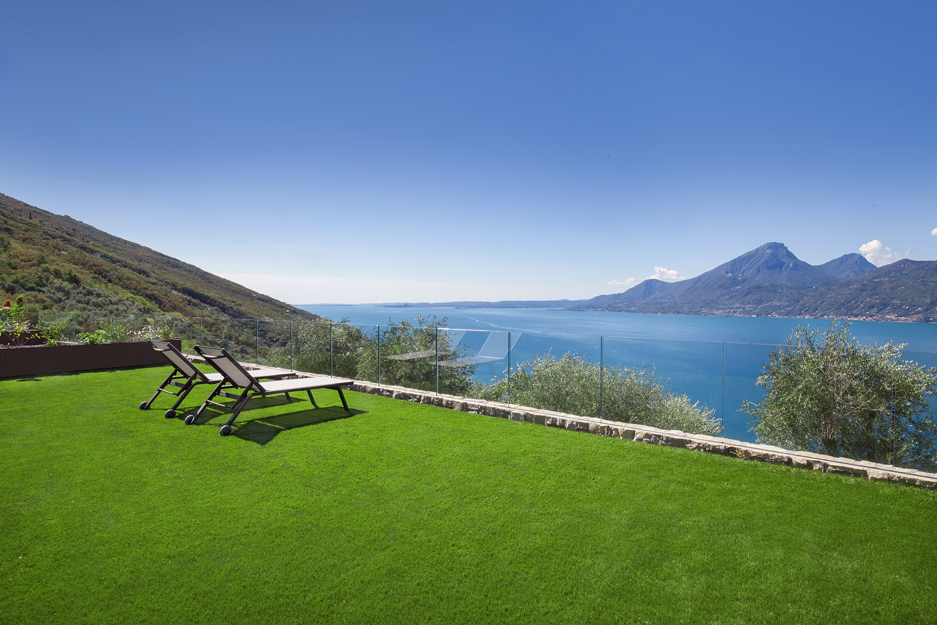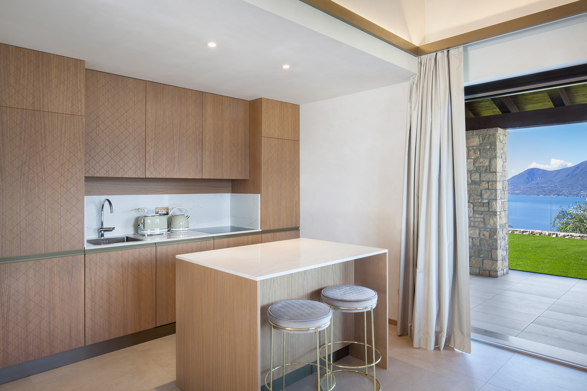 ICONA is a large apartment with a refined open space living area and two spacious double bedrooms, designed to accommodate up to four people. Comfort and style come together in the fine details of the furnishings and in the large spaces of the kitchen with island. From here the view of Lake Garda is unforgettable: get ready to fill your eyes and heart with beauty.