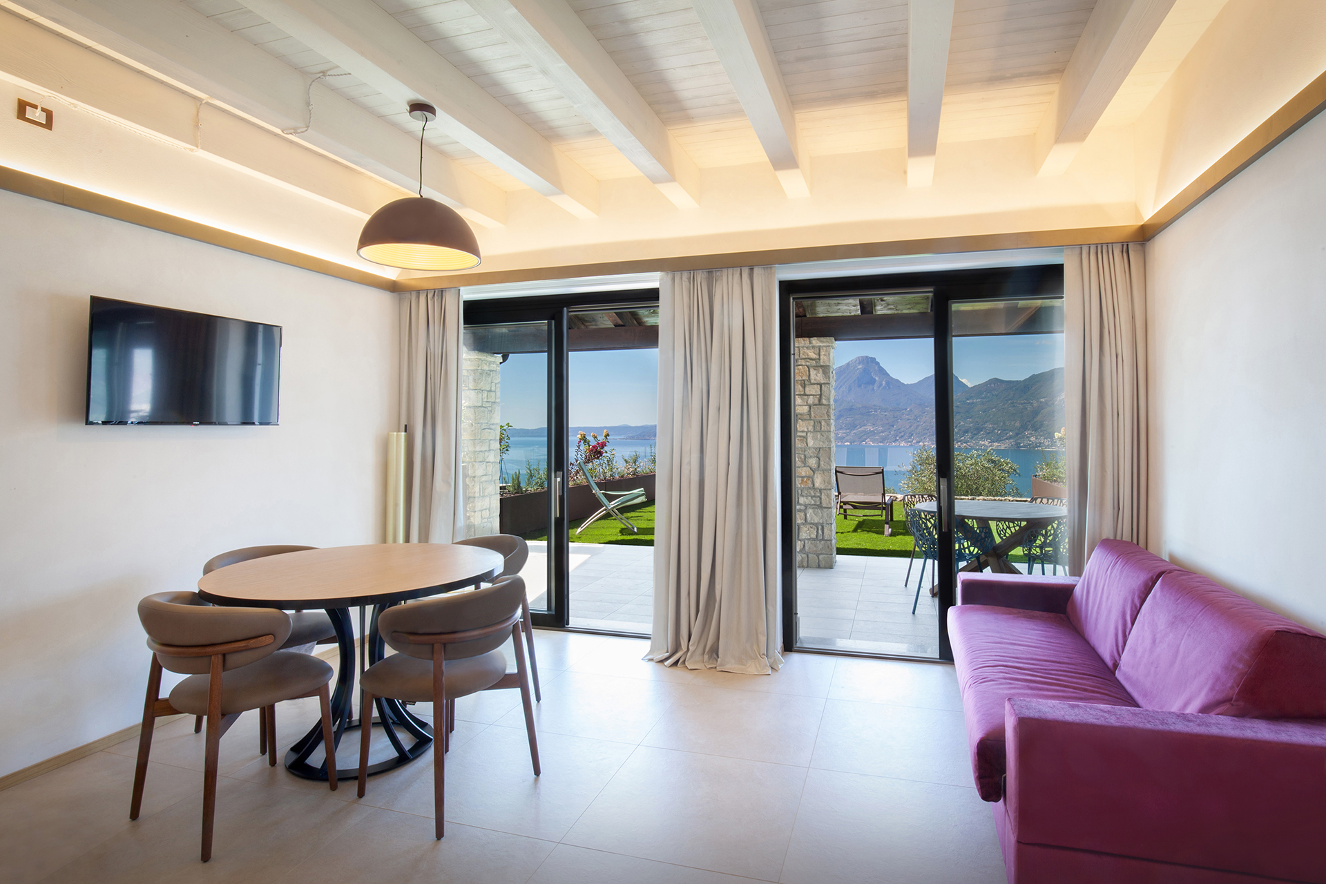 Lake Garda is one of the most romantic places in the world. Therefore, we have dedicated PRIMA to couples looking for privacy and relaxation. The spaces of this studio apartment have been studied in detail: from the multifunctional furnishings, to the bed with a view of Lake Garda, everything is tailor-made to make your holiday unique.