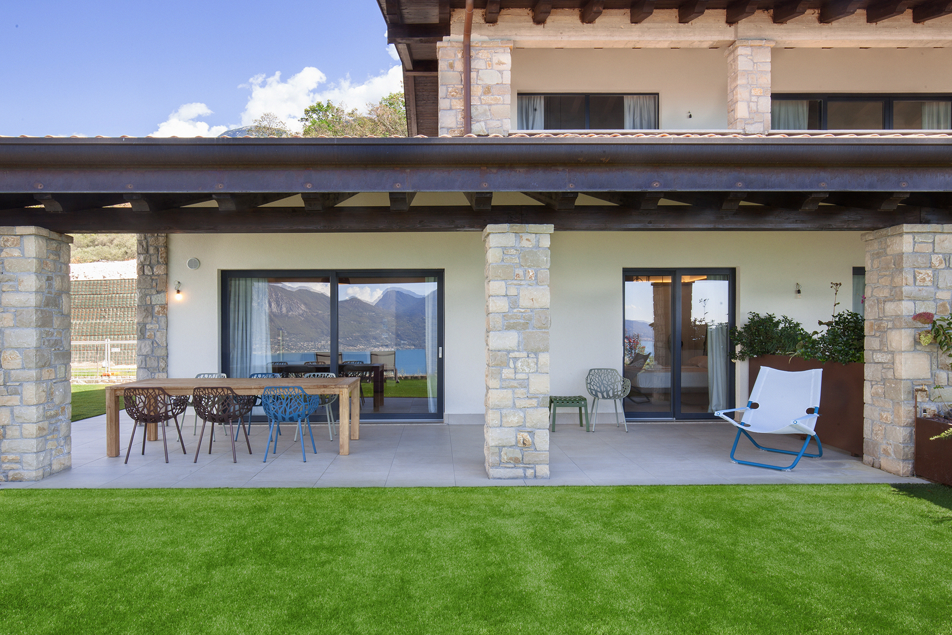 ICONA is a large apartment with a refined open space living area and two spacious double bedrooms, designed to accommodate up to four people. Comfort and style come together in the fine details of the furnishings and in the large spaces of the kitchen with island. From here the view of Lake Garda is unforgettable: get ready to fill your eyes and heart with beauty.